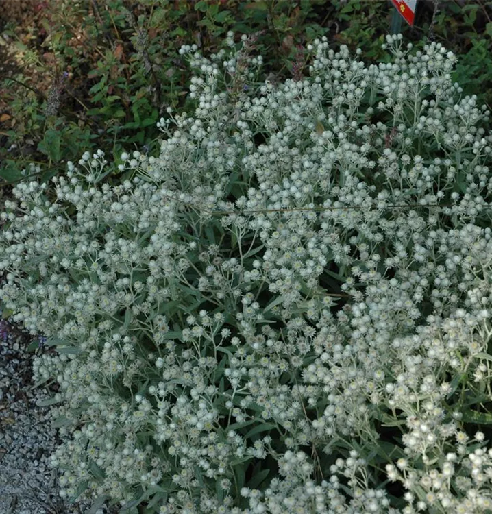 Das Perlkörbchen 'Sommerschnee' (Anaphalis triplinervis 'Sommerschnee') ist eine sterile Sorte, die mit einer Wuchshöhe von 20-25 cm auch deutlich kleiner bleibt als die Art. Auch die Blüten bleiben etwas kleiner und wirken silbriger. Eine besonders schöne Sorte für Beeteinfassungen!