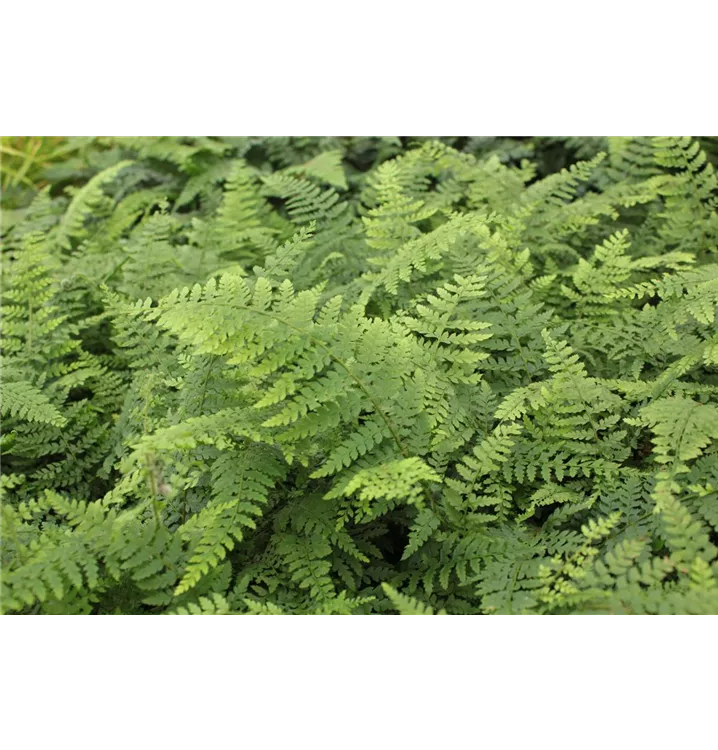 1x Fieder-Frauenfarn (Polystichum setiferum 'Proliferum') – ein eleganter, immergrüner Farn, der Halbschatten liebt und Höhe ins Beet bringt.