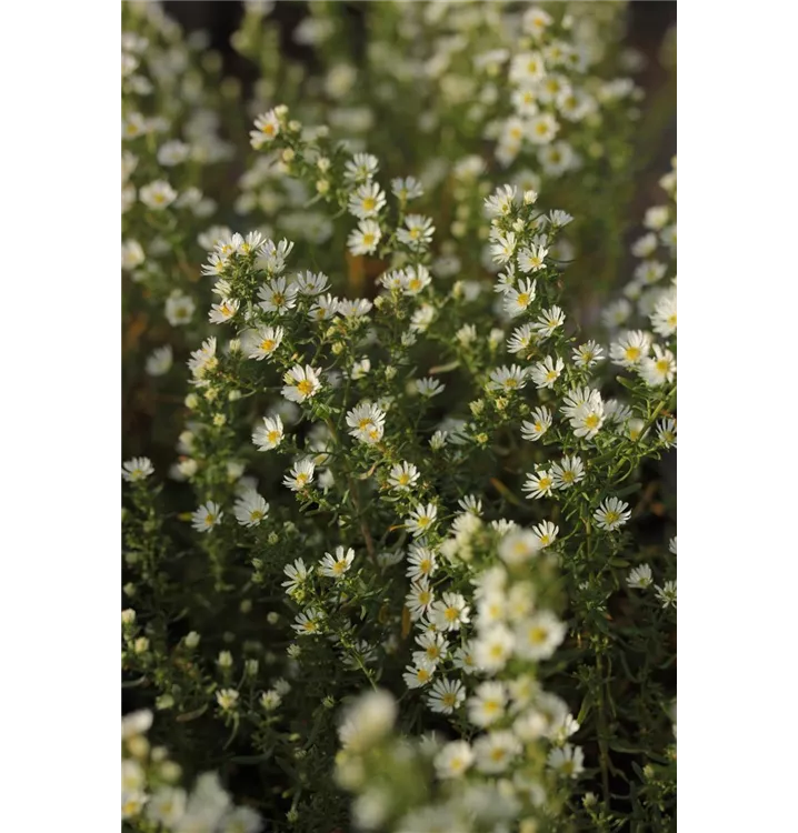 Aster ericoides 'Schneetanne' bildet körbchenartige, in Rispen angeordnete, weiße Blüten ab September. Diese verströmen einen angenehmen Duft.