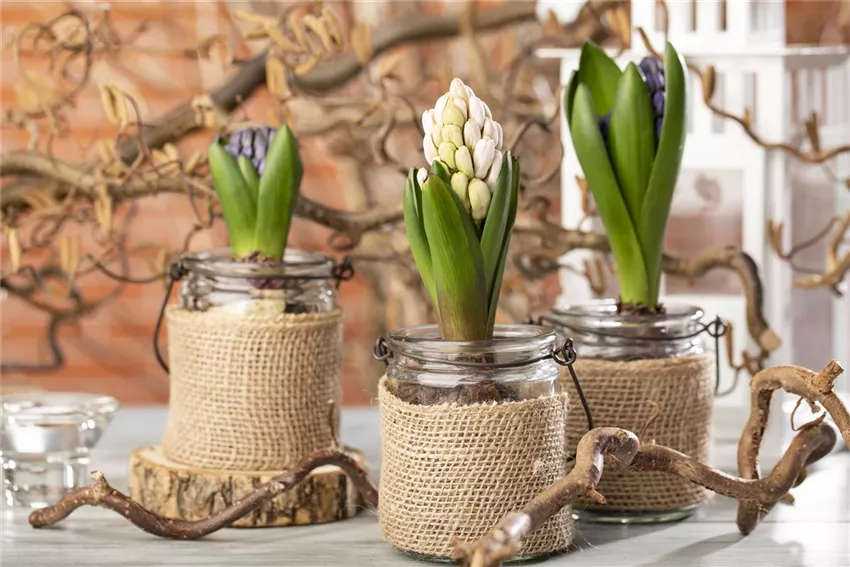Die Blüten der Hyazinthen sind auffällig schön und verströmen einen zarten Duft. Das macht sie zu perfekten Zimmerpflanzen. Sie können die Frühlingsblüher passend zum Weihnachtsfest zur Blüte bringen und Ihre Wohnung mit Blütenköpfen in elegantem Weiß oder festlichem Rot verzieren.