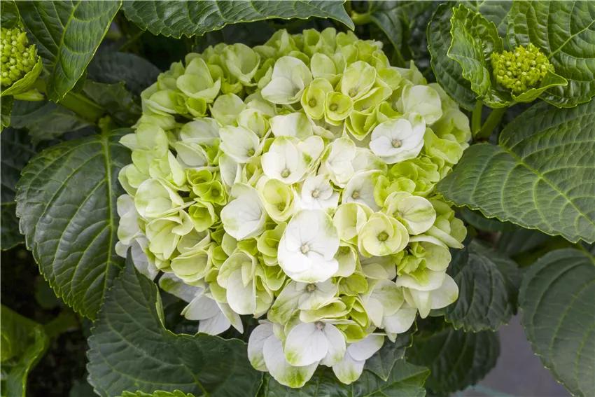 Hydrangea macrophylla 'Hochzeits-Hortensie®' Durch die umfangreiche Hortensienvielfalt zählen die Hortensien zu den beliebtesten Blütensträuchern für den Garten.