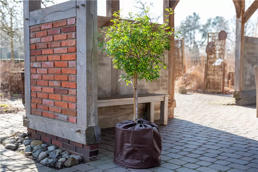 Überwinterung - Thermo Topfschutz Nicht nur die Pflanzen brauchen beim Garten winterfest machen Zuwendung und Pflege, auch die Gartengeräte und Hilfsmittel wollen versorgt werden. So sollte man vor dem Winter die Gartengeräte reinigen und gut geschützt lagern. Eine Garage, ein Schuppen, ein Gartenhaus oder ein Keller sind ideale Lagerstätten für Heckenschere, Spaten und Co. Aber auch Rasenmäher und andere elektrische Geräte können jetzt grundgereinigt werden, damit sie in der neuen Saison wieder gute Dienste erweisen. Außerdem kann man jetzt Dünger und Pflanzenschutzmittel einlagern und trocken und dunkel stellen. Denn dann verlieren sie ihre Wirkung nicht und können im neuen Gartenjahr für frische Energie sorgen und Pflanzen vor Schädlingen schützen. Wichtig ist, dass alles keimfrei gelagert wird, damit sich über den Winter keine Keime auf den Scheren oder anderen Gartengeräten anreichern, die dann bei Benutzung im neuen Jahr die Keime auf die Pflanzen übertragen. Alkohol oder Desinfektionsmittel sind hier eine gute Wahl, um Gartenschere, Schaufel und Co. zu sterilisieren und anschließend sicher einzulagern.