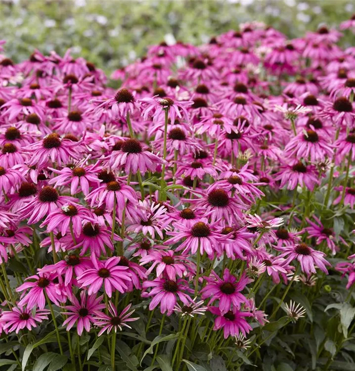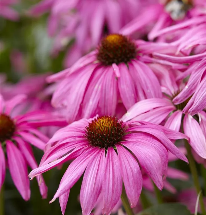 Purpur-Sonnenhüte tragen im Sommer große Körbchenblüten in auffälligen Farben, die leicht nach Honig duften und insbesondere bei Schmetterlingen und Honigbienen sehr beliebt sind. Der botanische Name leitet sich von dem griechischen Wort Echinos= Igel ab, weil das gewölbte, stachelige Körbchen in der Mitte an einen Igel erinnert. Die Blüten sind auch wunderbar zum Schnitt geeignet, sie halten sich 7 Tage und länger in der Vase. Die schwarz-braunen, kugeligen Samenstände sind bis in den Winter hinein dekorativ, v.a. im Kontrast mit Gräsern, die eine gelbe Herbstfärbung zeigen.