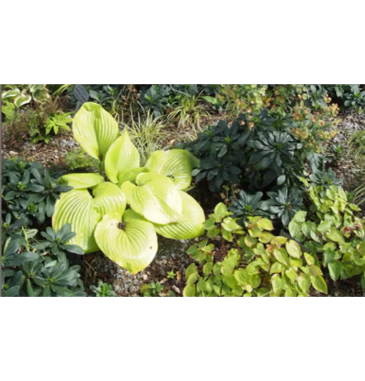 Gelbe, gelbgrüne und weiße Blütenfarben ergänzen diese blattschmuckbetonte Mischung perfekt. Durch die speziell aufeinander abgestimmte Sortenzusammenstellung können Staudenmischungen das ganze Jahr über durch Blüten, Blattwerk und Winteraspekte punkten.