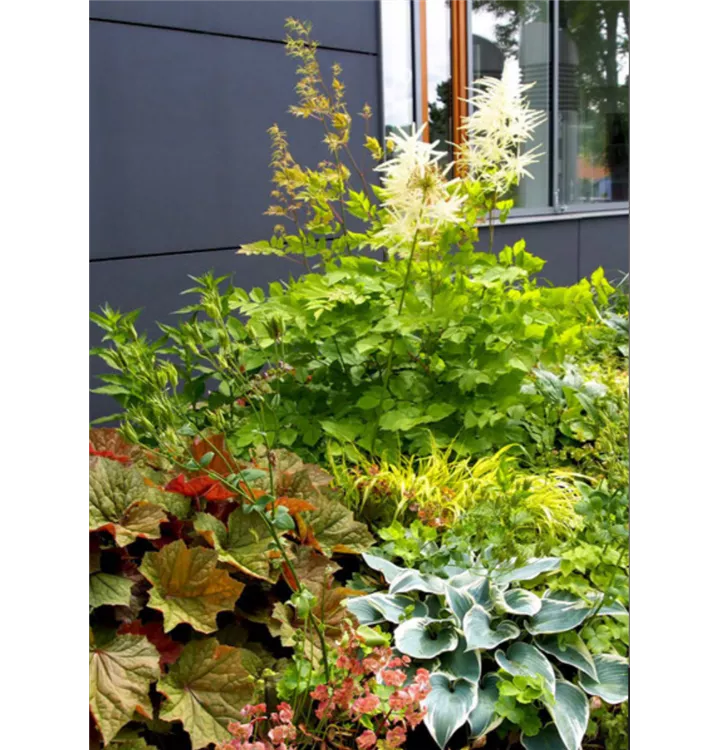 Langweilige Schattenbeete gehören mit dieser Mischung der Vergangenheit an. Die Mischung "Schattenjuwelen" bringt Leben in den Garten. Unterschiedliche Höhen bis 180 cm, teilweise panaschierte Blattschmuckstauden und gelbgrüne bzw. braunotte Blätter lassen jedes Gärtenher höher schlagen.