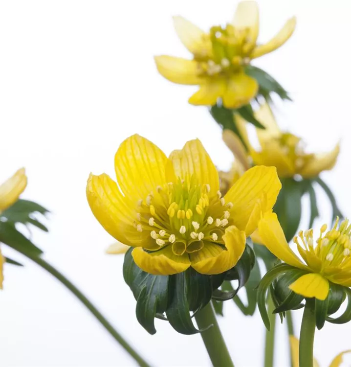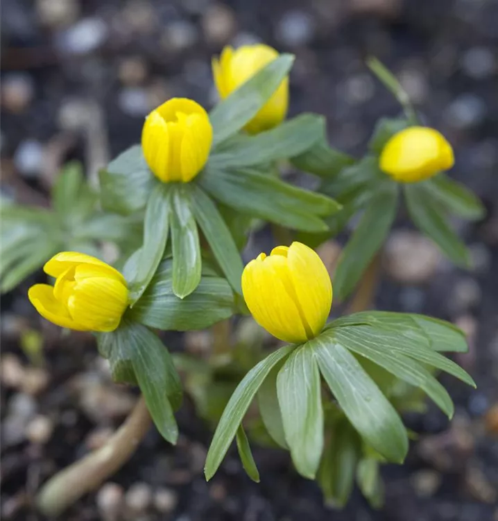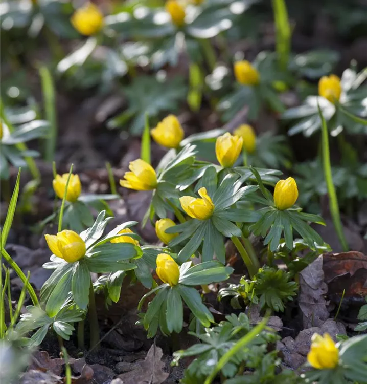 Der Winterling (Eranthis hyemalis) bringt ansehnliche, gelbe, angenehm duftende Blüten von Februar bis März hervor. Bevorzugt wird ein kalkhaltiger, lehmiger Boden in sonniger bis halbschattiger Lage. Die flache Staude erreicht gewöhnlich eine Höhe von 6 - 10 cm und wird bis zu 5 cm breit.