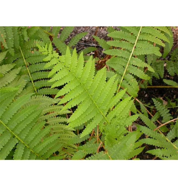 Der Garten-Schellenbaum-Wurmfarn 'Barnesii' (Dryopteris filix-mas) ist mit seiner dunkelgrünen Blattfärbung ein dekoratives Gestaltungselement im Garten, welches sich an einem halbschattigen bis schattigen Standort mit einem möglichst durchlässigen, humosen Boden am wohlsten fühlt. Bei günstigen Bedingungen erreicht diesen winterhartn Farn eine Höhe von ca. 1 m und wird bis zu 60 cm breit.
