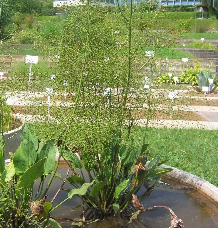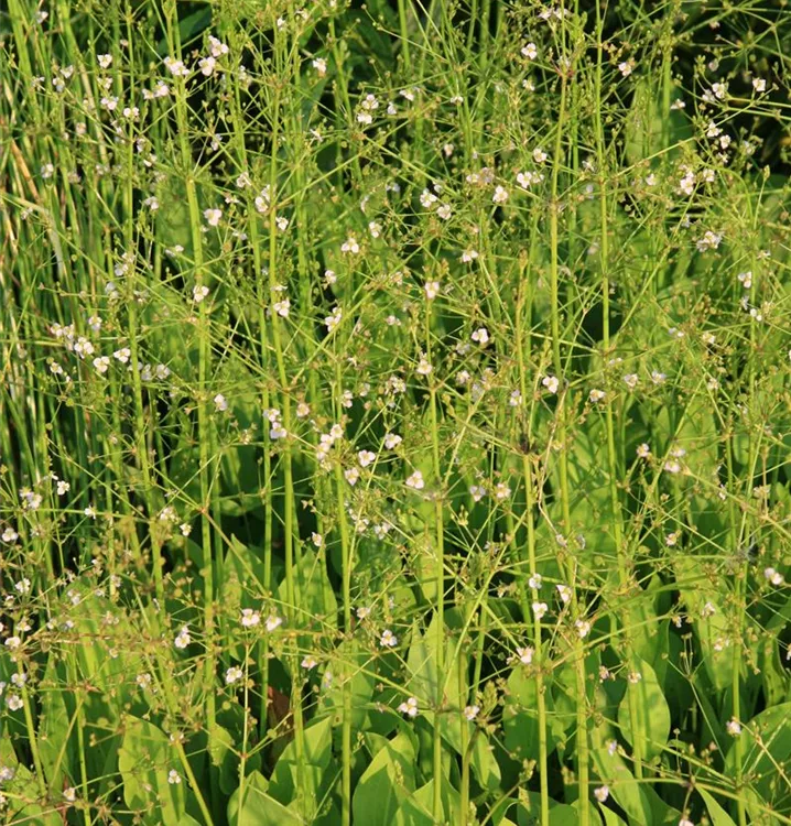 Die hellrosafarbenen Blüten des Gewöhnlichen Froschlöffel erscheinen in Rispen von Juni bis August.