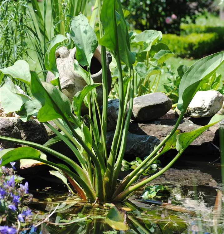 Der Gewöhnliche Froschlöffel ist eine weit verbreitete, heimische Sumpf- und Wasserpflanze. In Mitteleuropa wächst er häufig an sonnigen Ufern von Weihern, Teichen, Tümpeln und Gräben mit nährstoffreichen, schlammigen Böden. Im Gartenteich gedeiht er in einer Wassertiefe von etwa 5 bis 30 cm. Naturnah wirkt er in kleinen Gruppen von drei bis fünf Pflanzen. Als stark zehrende Sumpfpflanze trägt er zur Wasserreinigung bei, indem er überschüssige Nährstoffe aufnimmt und so das Algenwachstum reduziert.