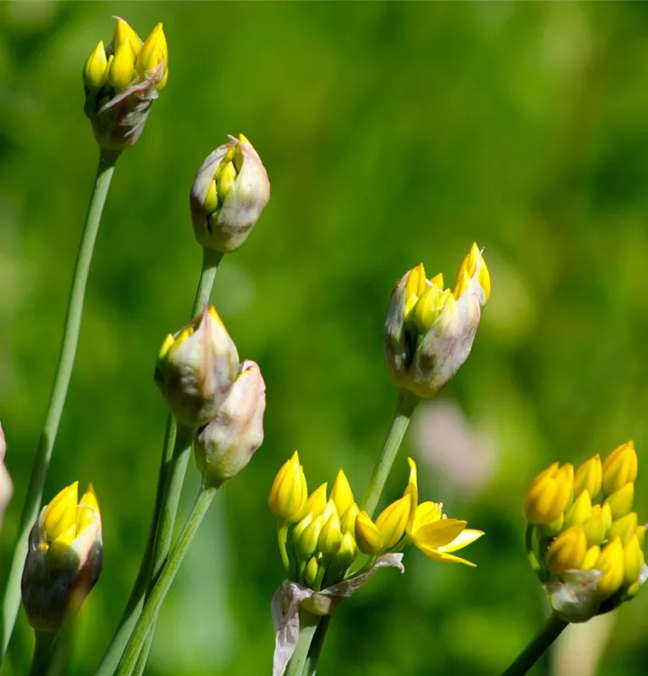 Das kräftige Gelb der Blüten ist selbst aus der Ferne gut sichtbar und so wirkt Gold-Lauch auch in kleineren Gruppen. In mediterranen Gärten ist Gold-Lauch besonders stimmig, z.B. zwischen Kräutern wie Ysop (Hyssopus), Thymian (Thymus), Lavendel (Lavandula) oder Salbei (Salvia). Auch im Vordergrund von Steppenanlagen kommt er sehr gut zur Geltung.