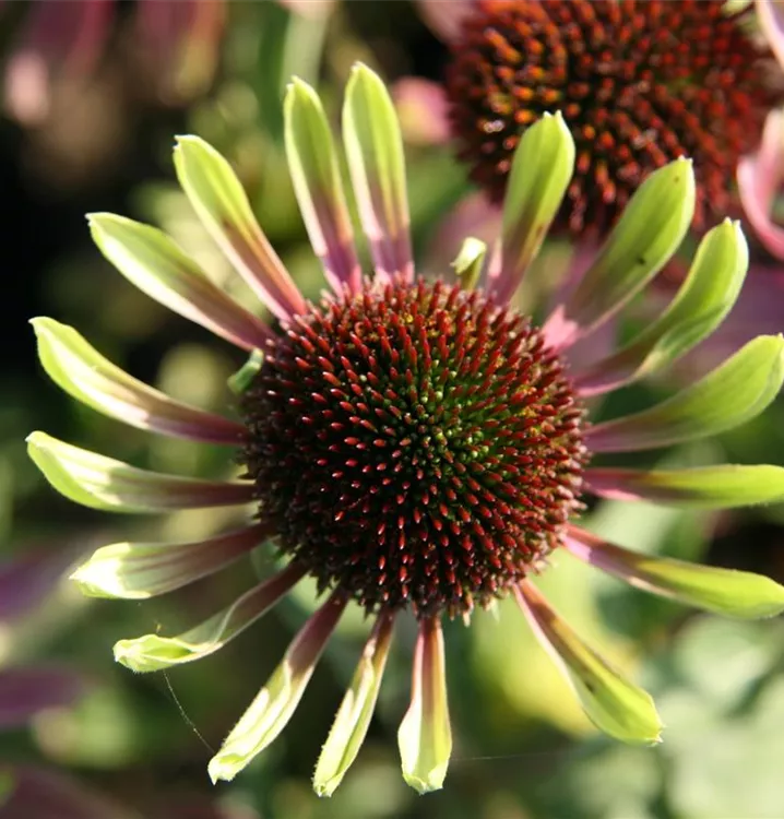 Purpur-Sonnenhüte tragen im Sommer große Körbchenblüten in auffälligen Farben, die leicht nach Honig duften und insbesondere bei Schmetterlingen und Honigbienen sehr beliebt sind. Der botanische Name leitet sich von dem griechischen Wort Echinos= Igel ab, weil das gewölbte, stachelige Körbchen in der Mitte an einen Igel erinnert. Die Blüten sind auch wunderbar zum Schnitt geeignet, sie halten sich 7 Tage und länger in der Vase. Die schwarz-braunen, kugeligen Samenstände sind bis in den Winter hinein dekorativ, v.a. im Kontrast mit Gräsern, die eine gelbe Herbstfärbung zeigen.