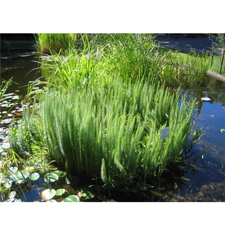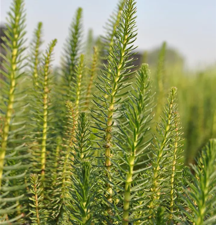 Mit dem Gewöhnlichen Tannenwedel erzeugen Sie einen Tannenwald im Wasser. Die reizvolle Wasserpflanze ähnelt mit ihrem nadeligen Blattbewuchs einem zierlichen Nadelgehölz. Im Gartenteich fühlt sie sich richtig wohl. Sie verträgt sich gut mit anderen Gewächsen, zum Beispiel mit Wasserlilien. Ihren märchenhaften Miniaturwald kann sie aber auch an Bachläufen und am Ufer entstehen lassen. Die Erde sollte humos und nährstoffreich sein.