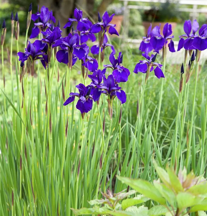 Iris sibirica 'Mountain Lake' bildet blaue Blüten ab Mai.