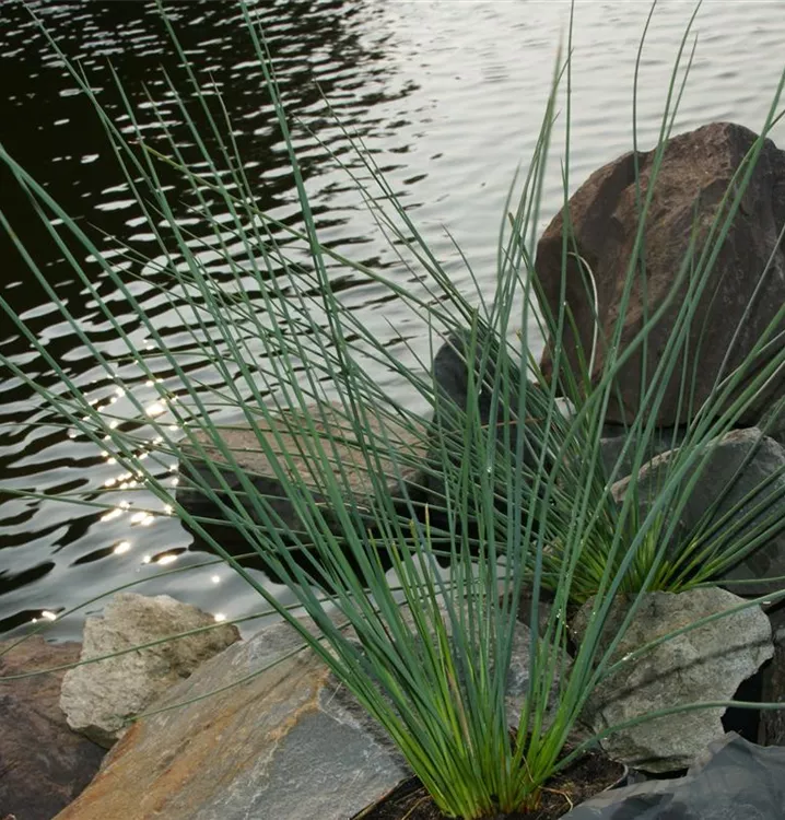 Als Hingucker am Teichrand ist die Blaugrüne Binse immer gern gesehen. Der grasartige Wuchs der Pflanze passt sich jeder Umgebung an und noch dazu ist die Blaugrüne Binse besonders pflegeleicht. In Gruppen gepflanzt, lässt sich das stimmungsvolle Bild am Teichrand besonders hervorheben. Kombinieren Sie die Pflanze mit verschiedenfarbigen Blüten und erfreuen Sie sich an dem harmonischen Gesamtbild. Im Sommer zeigt die Binse eine kleine weiße Blüte. Ein sonnige Standort sollte gegeben sein.