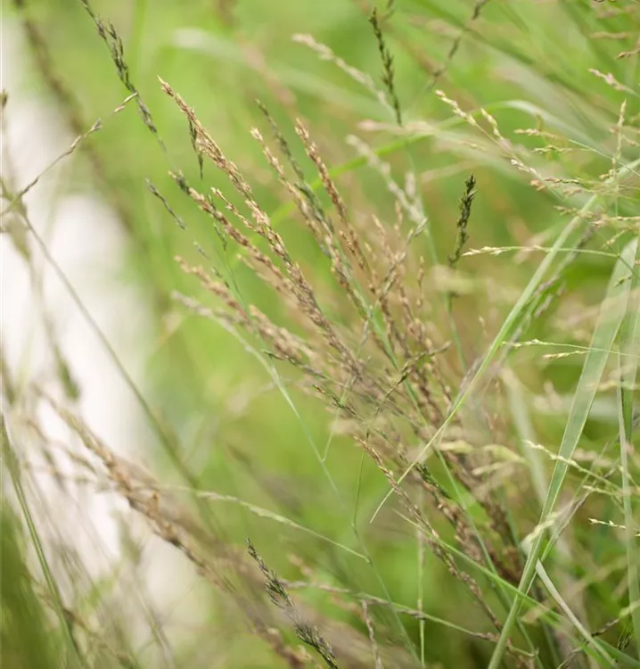 Die gelb-grünen Blüten des Hohen Garten-Pfeifengras 'Karl Foerster' erscheinen in Rispen von August bis Oktober.