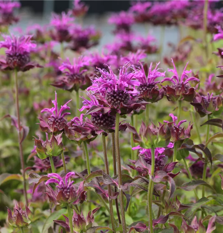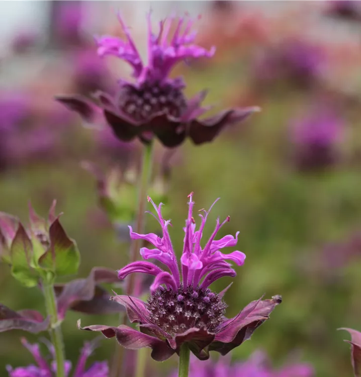 Mit ihren leuchtenden Farben und markanten Blütenständen ist Monarda ein echter Blickfang im Sommergarten. Die Blüten sind Köpfchen mit zahlreichen schmalen Röhrenblüten, aus denen Staubblätter und Griffel deutlich hervorragen. Viele Sorten tragen zudem auffallend gefärbte Hochblätter in Rottönen oder Violett. Die Gattung Monarda wurde vom Bund deutscher Staudengärtner zur Staude des Jahres 2023 gekürt.