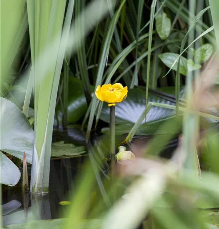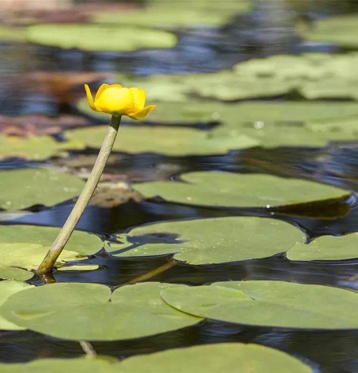 Die Große Teichrose (Nuphar lutea) ist mit ihren dunkelgrünen Blättern eine ausgesprochen dekorative Wasserpflanze, die für solche Einsatzbereiche wie Teich besonders gut geeignet ist. Gelbe Blüten erscheinen von Juni bis August. Sie bevorzugt kalkfreien Boden in sonniger bis schattiger Lage. Die Große Teichrose ist gut frostverträglich. Die breite, rhizombildende Staude erreicht gewöhnlich eine Höhe von ca. 10 cm.