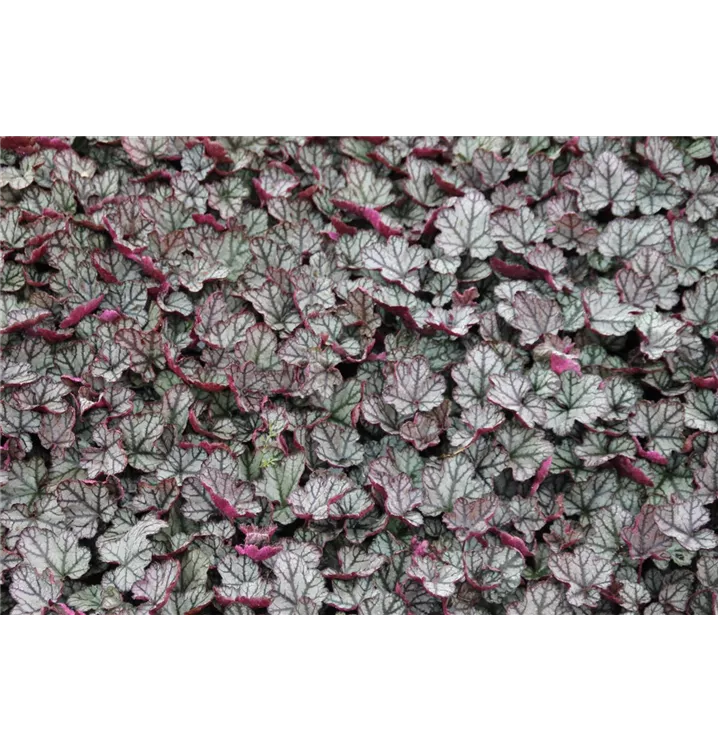 An den äußeren Rändern setzen wir die filigrane Carex hachijoensis 'Evergold' (Segge) ein, deren elegantes, feines Gras mit gelbem Rand dem Arrangement eine lebendige Umrahmung verleiht. Direkt daneben bringen die Heuchera (Purpurglöckchen) mit ihren farbenfrohen und abwechslungsreichen panaschierten Blättern einen wunderschönen Kontrast und eine interessante Textur ins Spiel. Im Zentrum des Blumenkastens wächst die immergrüne, kräftig wachsende Vinca major 'Variegata', die als hängender Blickfang mit ihren frisch-grünen, cremeweiß panaschierten Blättern begeistert und sich jederzeit nach Belieben zurückschneiden lässt, um die Form und das harmonische Gesamtbild zu bewahren.