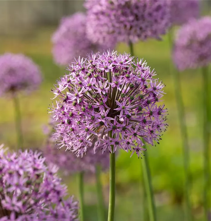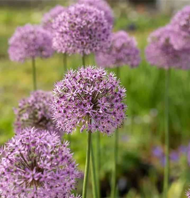 Die hohen Zierlauch-Sorten sind Hybriden, deren Vorfahren aus den zentralasiatischen Bergsteppen stammen. Sie werden inzwischen sehr häufig angepflanzt, so kann man sich jedes Jahr wieder auf diese ornamentalen und fluffigen Blütenbälle im Frühsommer freuen!