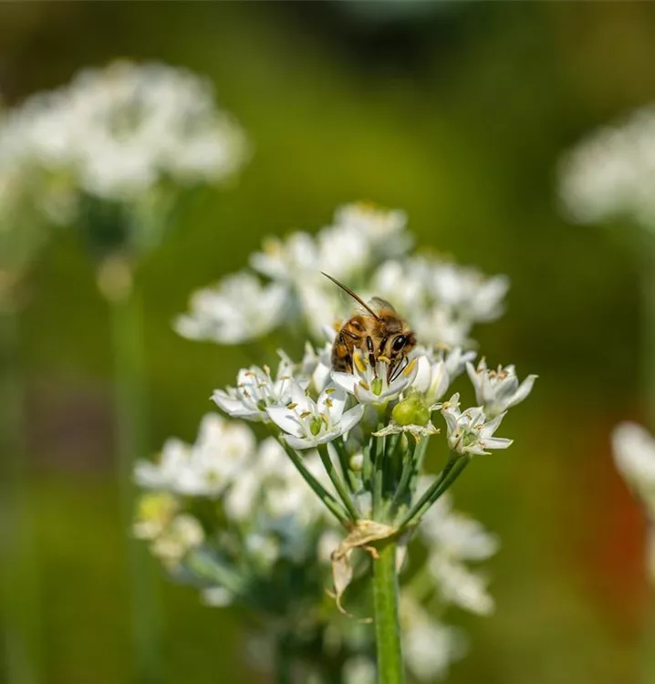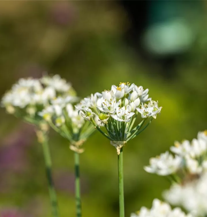 Von Anfang bis Ende Mai erscheinen bei Allium cowanii (auch unter Allium neapolitanum bekannt) lockere, fast kugelige Blütenstände aus strahlend weißen, sternförmigen Einzelblüten. Charakteristisch ist das bogenförmige Aufrichten der Knospen an bis zu 40 cm langen Stielen. Die Blüten wirken zart und natürlich und behalten etwa drei Wochen lang ihre Zierwirkung. Früh geschnitten, öffnen sie sich auch in der Vase vollständig und halten dort ebenso lange. Nach der Blüte zieht das Laub bereits im Frühsommer ein.