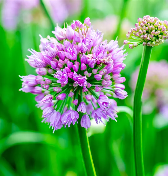 Allium senescens ist eine Lauch-Art, die in ganz Eurasien verbreitet ist. Die Sorte 'Millennium' ist eine Hybride aus Allium senescens und wahrscheinlich Allium nutans. Das Laub ist dunkler, die Blütenstände etwas größer und die Blütenfarbe kräftiger. Er wächst aber etwas langsamer als die Wildform.
