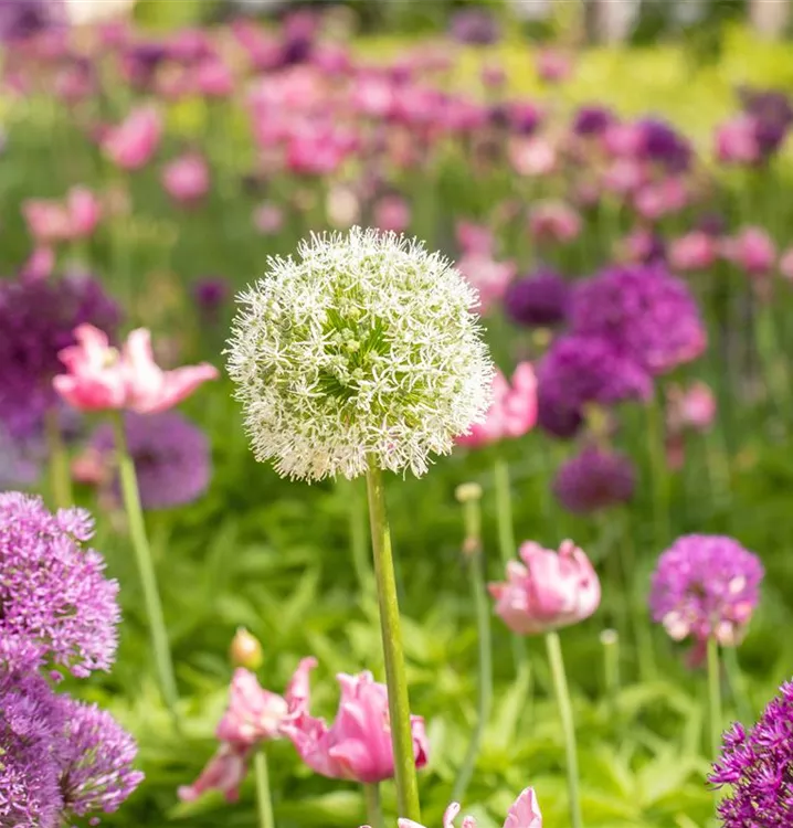 Am besten gedeiht ‘Mont Blanc’ an einem warmen bis heißen Standort in voller Sonne, idealerweise in einem durchlässigen Sand-, Kies- oder Schotterboden. Die Sorte ist etwas weniger stickstoffbedürftig als andere Allium-Hybriden und blüht daher recht zuverlässig. Nimmt die Blühfreude mit den Jahren ab, ist eine Düngung im Frühjahr zum Austrieb sinnvoll. In humosen Böden leidet die Standfestigkeit, und durch winterliche Bodenfeuchte kann die Zwiebel faulen.