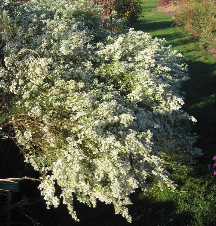 Aster ericoides 'Schneetanne' bildet körbchenartige, in Rispen angeordnete, weiße Blüten ab September. Diese verströmen einen angenehmen Duft.
