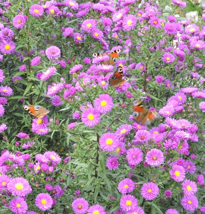 Aster novae-angliae 'Purple Dome' bildet körbchenartige, purpurrote Blüten ab September. Diese verströmen einen angenehmen Duft.