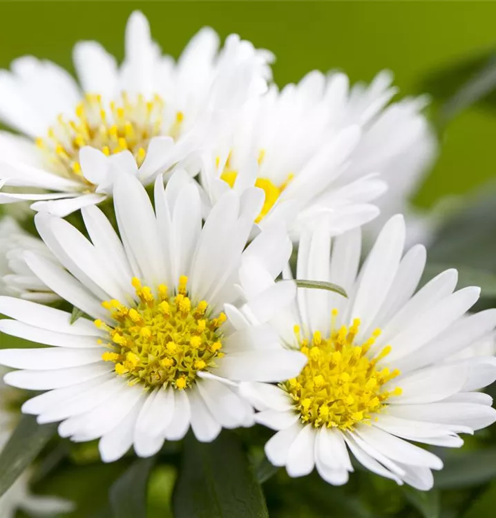 Die Garten-Glattblatt-Aster 'Schneeberg' (Aster novi-belgii) ist eine aufrechte Staude, die von September bis Oktober weiße, körbchenartige Blüten mit einem angenehmen Duft bildet. An einem sonnigen Standort mit durchlässigem, humosem, nährstoffreichem Boden erreicht sie gewöhnlich eine Höhe von ca. 1,2 m und wird ca. 60 cm breit. Die Garten-Glattblatt-Aster 'Schneeberg' ist gut frostverträglich.