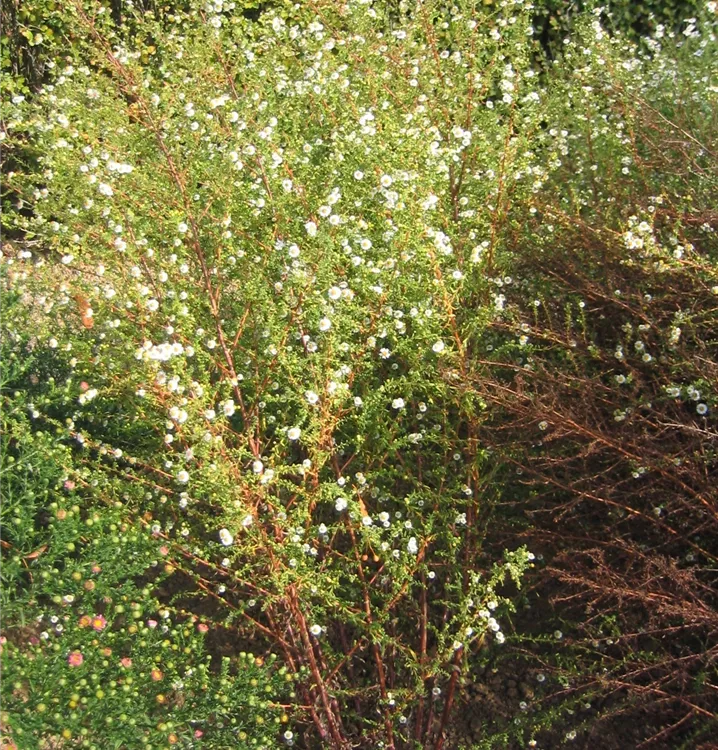 Aster pringlei 'Monte Cassino' bildet körbchenartige, weiße Blüten ab September. Diese verströmen einen angenehmen Duft.