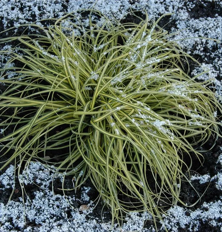 Die Garten-Goldrand-Segge 'Aureovariegata' weist eine gute Frosthärte auf.
