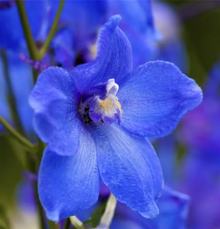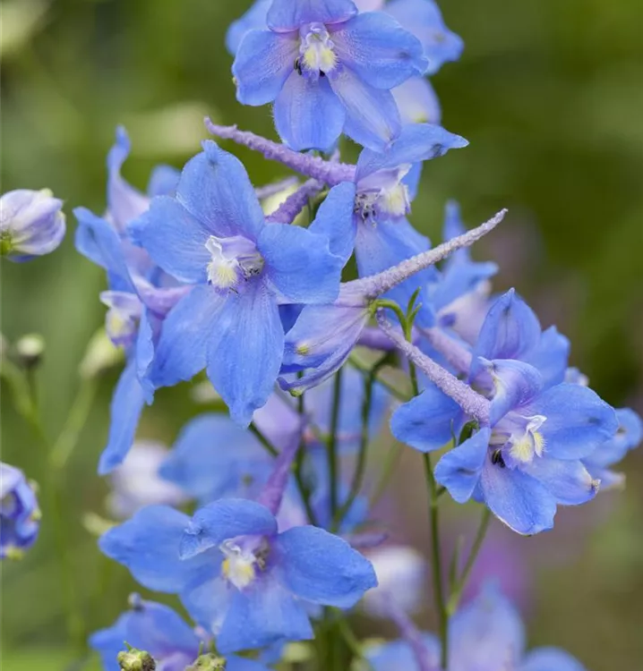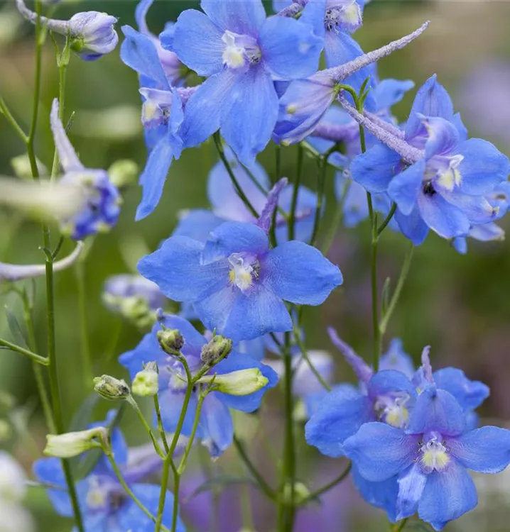 Delphinium belladonna 'Piccolo' bildet schalenförmige, in Rispen angeordnete, blaue Blüten ab Juni. Bei richtiger Pflege Nachblüte von September bis Oktober.