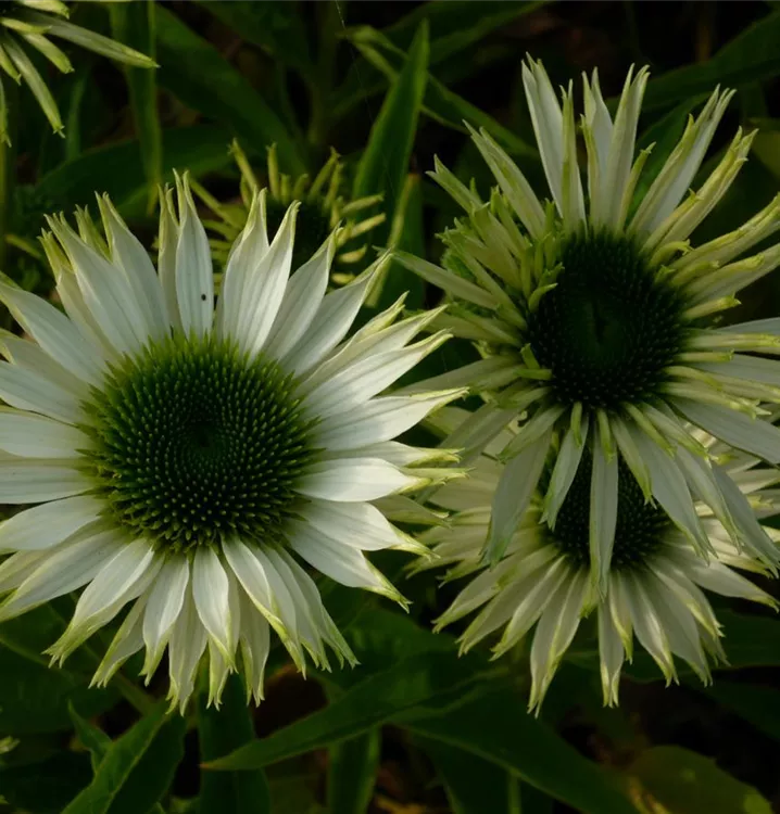 Der Purpur-Sonnenhut 'Virgin' -R- (Echinacea purpurea 'Virgin' -R-) blüht in Weiß mit einem grünlichen Körbchen.
