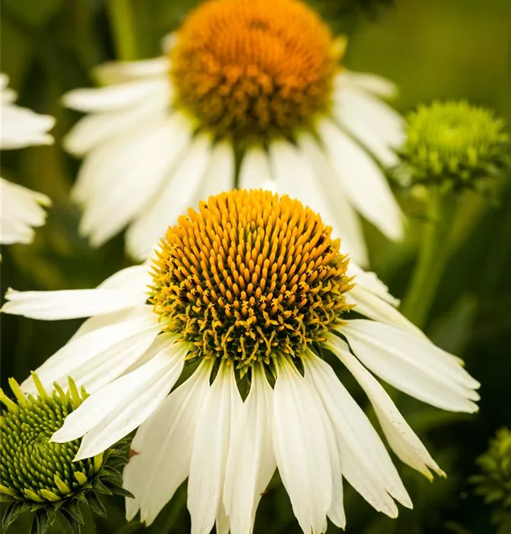 Purpur-Sonnenhüte tragen im Sommer große Körbchenblüten in auffälligen Farben, die leicht nach Honig duften und insbesondere bei Schmetterlingen und Honigbienen sehr beliebt sind. Der botanische Name leitet sich von dem griechischen Wort Echinos= Igel ab, weil das gewölbte, stachelige Körbchen in der Mitte an einen Igel erinnert. Die Blüten sind auch wunderbar zum Schnitt geeignet, sie halten sich 7 Tage und länger in der Vase. Die schwarz-braunen, kugeligen Samenstände sind bis in den Winter hinein dekorativ, v.a. im Kontrast mit Gräsern, die eine gelbe Herbstfärbung zeigen.
