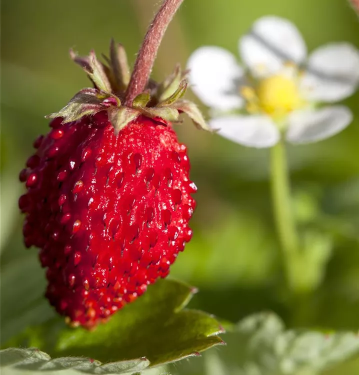 Die roten Beeren haben einen süßen, intensiven Geschmack. Reifezeit ab Juni.