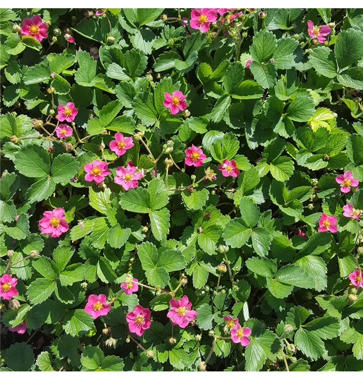 Diese Pflanze könnte in ihren Ansprüchen bzw. Aussehen der Garten-Zier-Erdbeere 'Lipstick'® ähnlich sein: Fragaria vesca (Gewöhnliche Wald-Erdbeere).