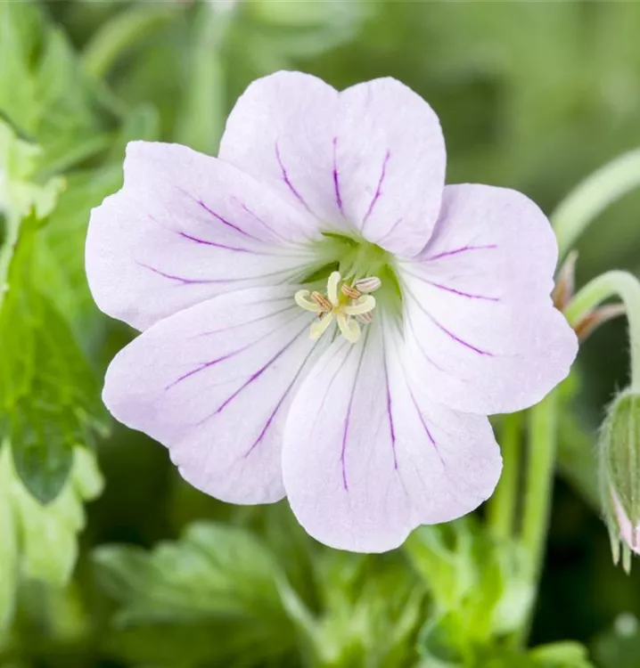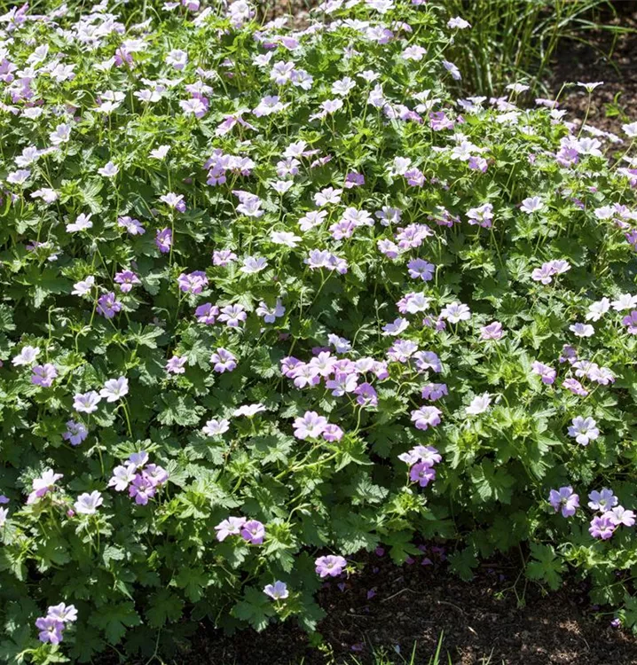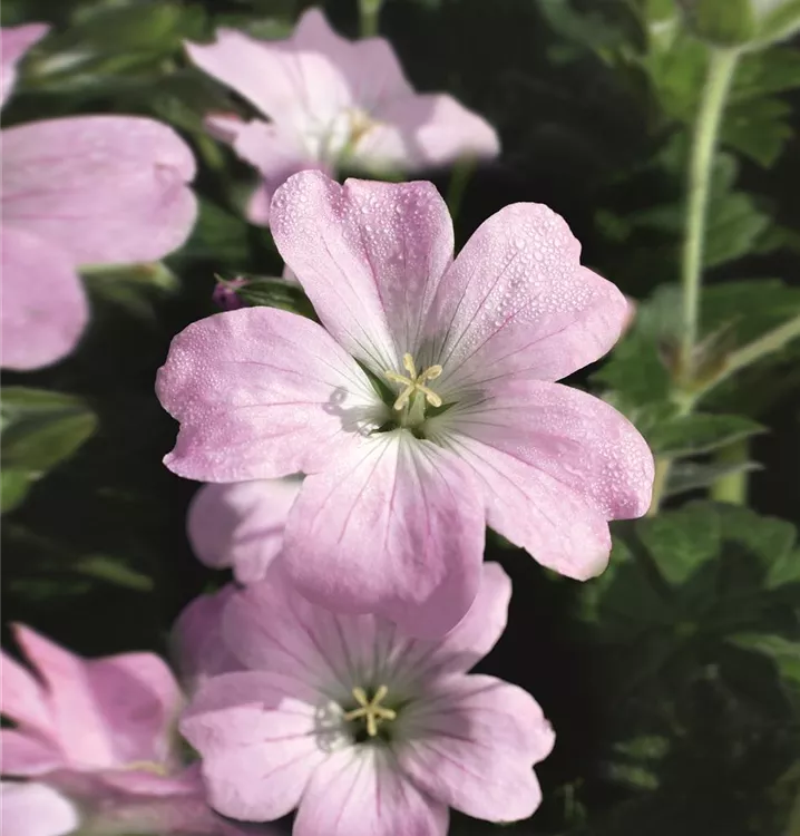 Der Garten-Storchschnabel 'Dreamland'® (Geranium x cult) ist eine kissenartige, aufrechte Staude, die von Juni bis Oktober hellrosa Blüten mit rosa Aderung bildet. An einem sonnigen bis halbschattigen Standort erreicht er gewöhnlich eine Höhe von ca. 30 cm und wird ca. 40 cm breit. An den Boden stellt der Garten-Storchschnabel 'Dreamland'® keine besonderen Ansprüche. Der Garten-Storchschnabel 'Dreamland'® ist gut frostverträglich.