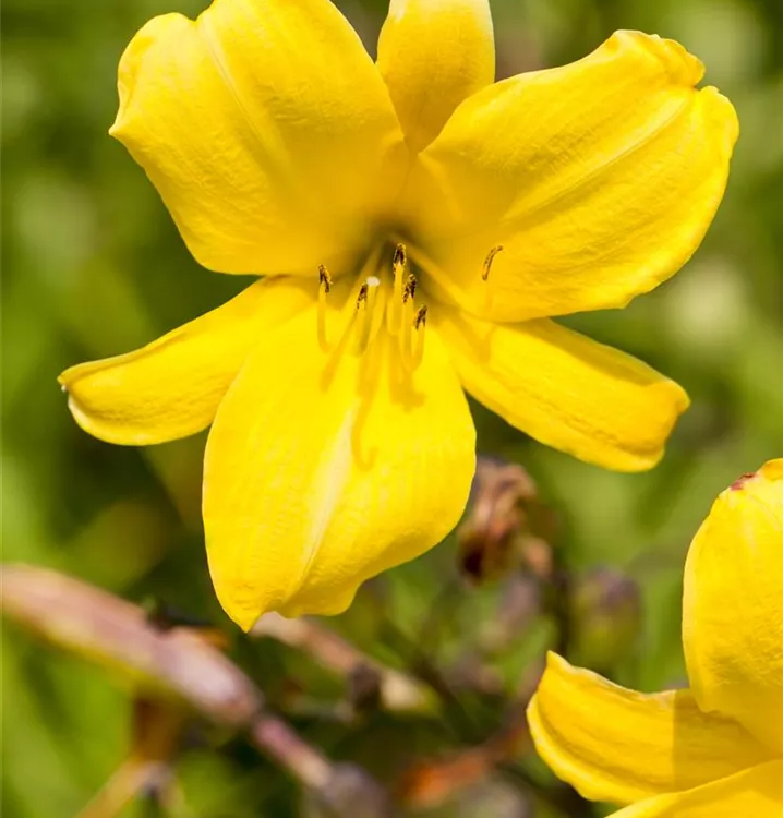 Hemerocallis 'Mini Stella' bildet trichterförmige, goldgelbe Blüten ab Juni. Diese verströmen einen angenehmen Duft.