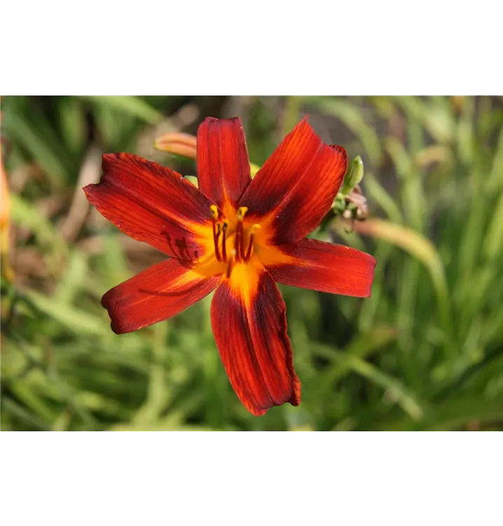 Hemerocallis 'Sammy Russel' bildet trichterförmige, rote Blüten ab Juni. Diese verströmen einen angenehmen Duft.