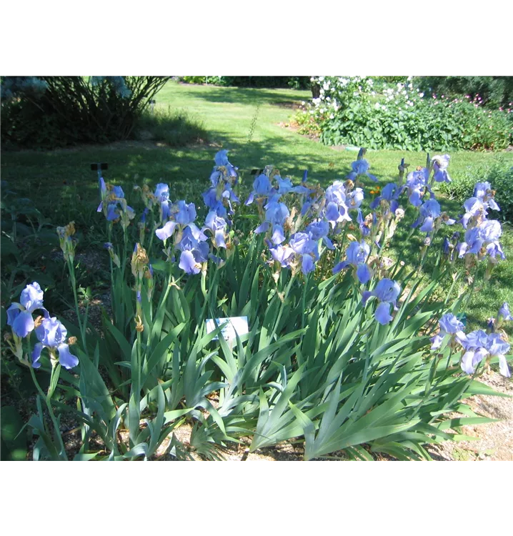 Die Dalmatinische Schwertlilie (Iris pallida var. dalmatica) bildet hellblaue, ansehnliche Blüten von Mai bis Juni.