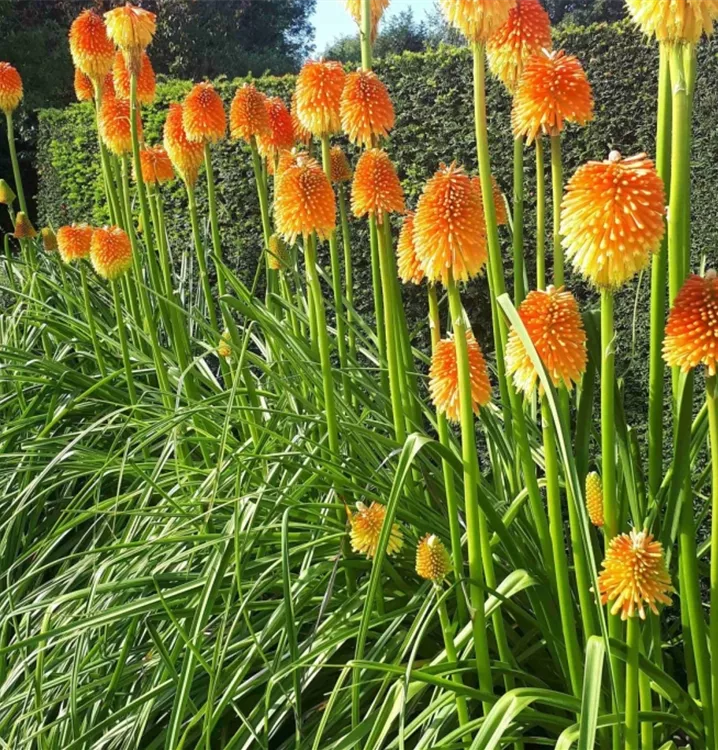 Fackellilien stammen ursprünglich aus Afrika und bringen mit ihren leuchtenden Blütenfackeln einen Hauch Exotik in den Garten. Kniphofia rooperi ist eine Wildart aus den Sumpfgebieten Ostafrikas.