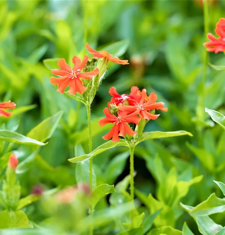 Die Brennende Liebe (Lychnis chalcedonica) ist eine aufrechte Staude, die von Juni bis Juli rote, radförmige Blüten bildet. An einem sonnigen bis halbschattigen Standort mit durchlässigem, humosem Boden erreicht sie gewöhnlich eine Höhe von ca. 1 m und wird ca. 60 cm breit. Die Brennende Liebe ist gut frostverträglich.