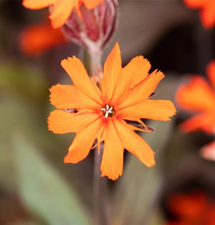 Die Garten-Bastard-Lichtnelke (Lychnis arkwrightii) ist eine aufrechte Staude, die von Juni bis Juli scharlachrote, radförmige Blüten bildet. An einem sonnigen bis halbschattigen Standort mit durchlässigem, kalkfreiem, nährstoffreichem Boden erreicht sie gewöhnlich eine Höhe von ca. 40 cm und wird ca. 30 cm breit. Die Garten-Bastard-Lichtnelke ist gut frostverträglich.