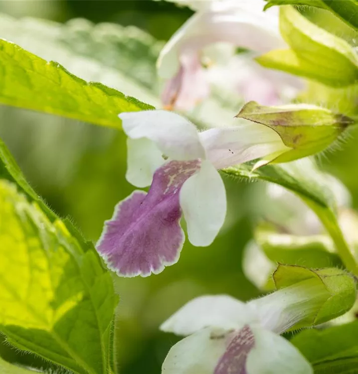 Melittis melissophyllum 'Royal Velvet Distinction'® bildet lippenförmige, in Quirlen angeordnete, zweifarbige Blüten ab Mai. Diese verströmen einen angenehmen Duft.