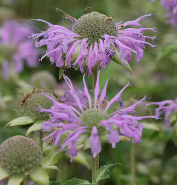 Mit ihren leuchtenden Farben und markanten Blütenständen ist Monarda ein echter Blickfang im Sommergarten. Die Blüten sind Köpfchen mit zahlreichen schmalen Röhrenblüten, aus denen Staubblätter und Griffel deutlich hervorragen. Viele Sorten tragen zudem auffallend gefärbte Hochblätter in Rottönen oder Violett. Die Gattung Monarda wurde vom Bund deutscher Staudengärtner zur Staude des Jahres 2023 gekürt.