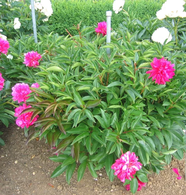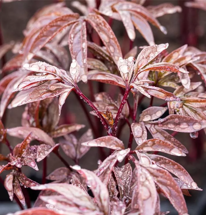 Edel-Pfingstrosen ziehen sich im Spätsommer unter die Erde zurück und treiben im darauffolgenden Frühjahr wieder aus. Im Austrieb sind die Blätter rötlich. Bleibt die Blüte aus, liegt dies häufig an zu tiefer Pflanzung, Kalium-/Phoshormangel oder an der natürlichen Etablierungsphase nach dem Verpflanzen.