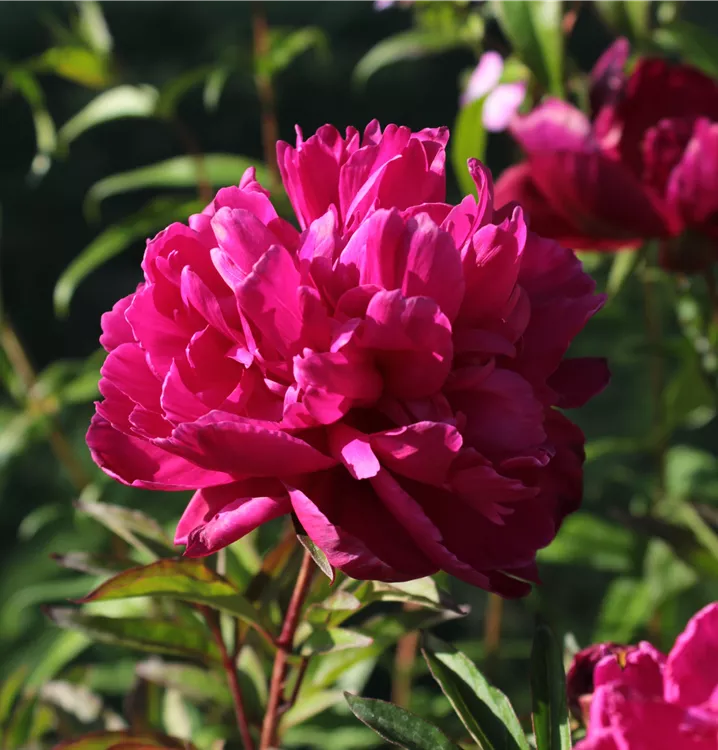 Edel-Pfingstrose 'Karl Rosenfield' (Paeonia x lactiflora 'Karl Rosenfield') wurde 1908 von Rosenfield eingeführt und zählt zu den bewährten Klassikern unter den gefüllten Sorten. Sie trägt ganzgefüllte, dunkelrosa bis karminrote Blüten und duftet leicht. Besonders vielblütig. Höhe: ca. 80 cm.