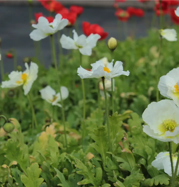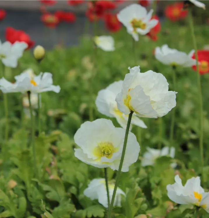 Der Island-Mohn 'Spring Fever White' (Papaver nudicaule 'Spring Fever White') blüht einheitlich weiß.