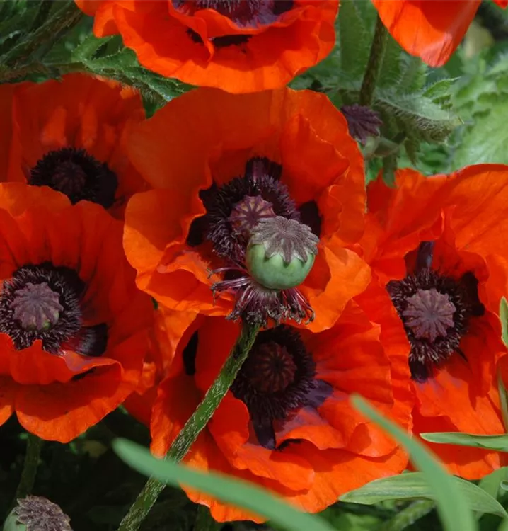 Mit ihren auffälligen üppigen Blüten ist diese Pflanze eine wahre Pracht in jedem Garten. Der Orientalische Garten-Mohn 'Brillant' besitzt besonders imposante feuerrote Blüten und eine beinahe märchenhafte Stimmung macht sich beim Gartenrundgang breit. Auch die Bienen finden scheinbar spielend den Weg zu den auffälligen Blütenköpfen. Der Anblick ist besonders eindrucksvoll, wenn Sie sich für eine Gruppenpflanzung entscheiden.
