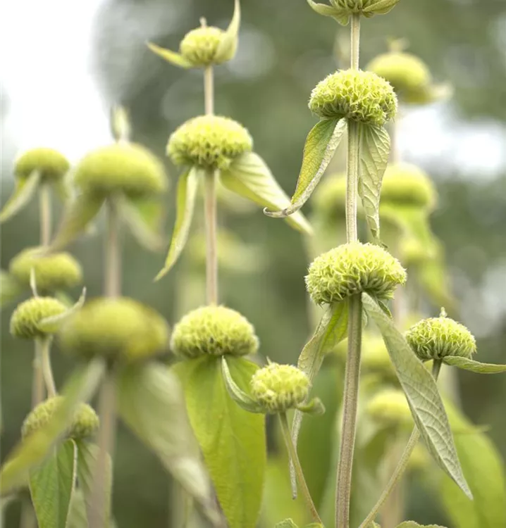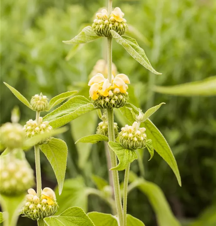 Phlomis russeliana bildet in Quirlen angeordnete, gelbe Blüten ab Juni.